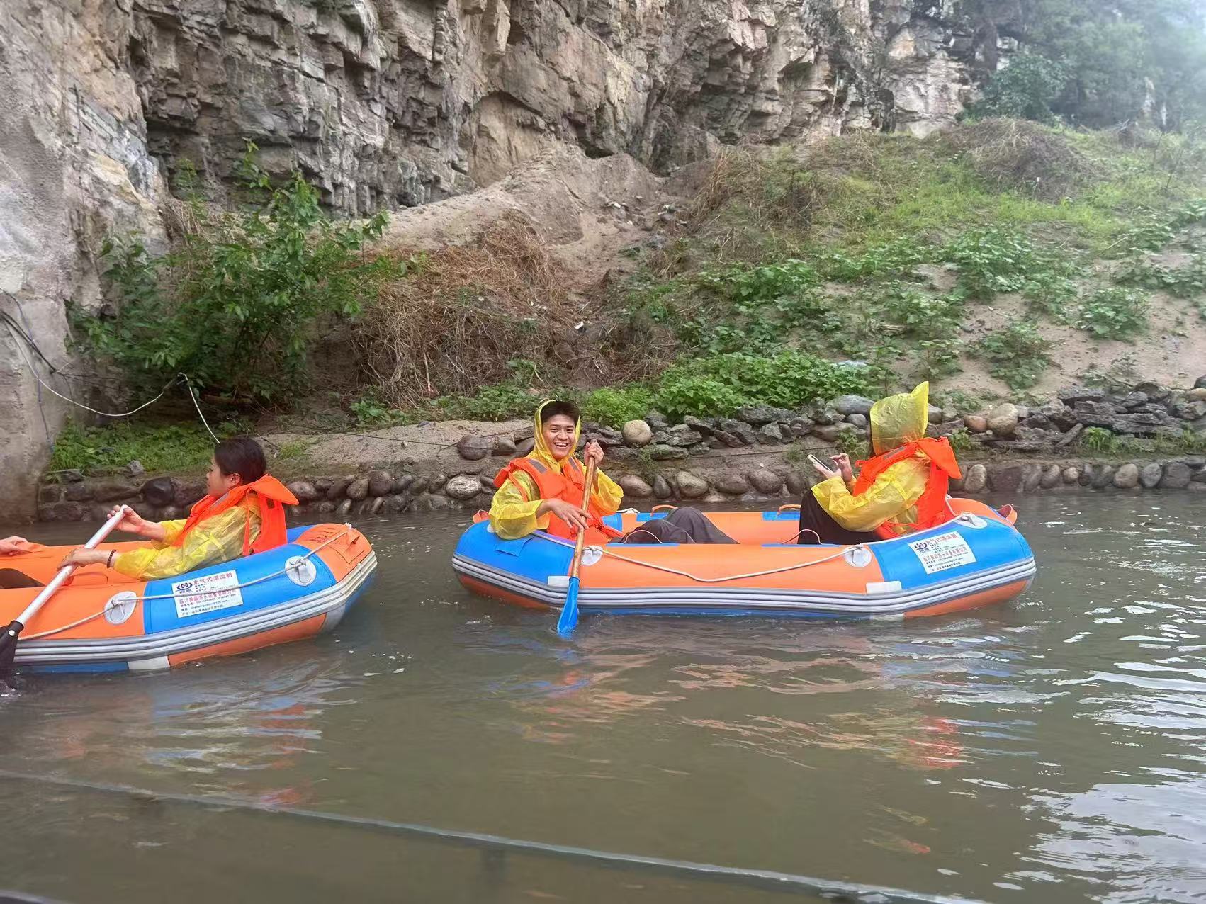 今年我们游玩的目的地是河北省保定市涞水县野三坡,沿途的不同风景变换着,同事们也叽叽喳喳的讨论着;因为我们平时是分布在三个区域的实验室,很少有时间聚在一起,所以每年的这一次相聚也是很难得,此刻大家也熟络起来,讨论着工作中的趣事或是一起讨论着搞笑的视频,欢声笑语充满了整个车厢,此刻我们大家的心情真的是既轻松又激动。 经过六个小时的车程,我们终于安全抵达酒店,用餐后,我们就陆续回到酒店休息,期待明天的行程~ 可能老天爷也觉得我们能聚在一起的时间太少了,必须让我们聚在一起好好的玩一次才行,从早上五点左右,就开始下起雨来,还是中雨量,一直到八点多也没有减量的迹象,我们就来到了景区的一个会议室,在这里开启我们的团建游戏之旅,随着主持人给我们游戏中出题的各种出其不意,让我们好几位同事“中招“表演节目,逗得大家哈哈大笑,听到最多的就是我的脸都快笑僵了~但我们仍然乐在其中,在后面的游戏中 我们分为两个队,山东队和亮剑队,最有意思的是我们两个队一起角逐冰壶的游戏,冰壶是一项兼具策略性、技巧性与团队协作的运动,我们两个队每个队员交替投掷,通过我们控制出手力度和角度,把握冰壶的旋转规律,通过占位、撞击、防守等策略阻止对方得分;冰壶更像是“冰上的象棋”,它体现了我们在技巧、策略和团队协作和体育竞技的精神追求;最终我们山东队领先,获得冠军。