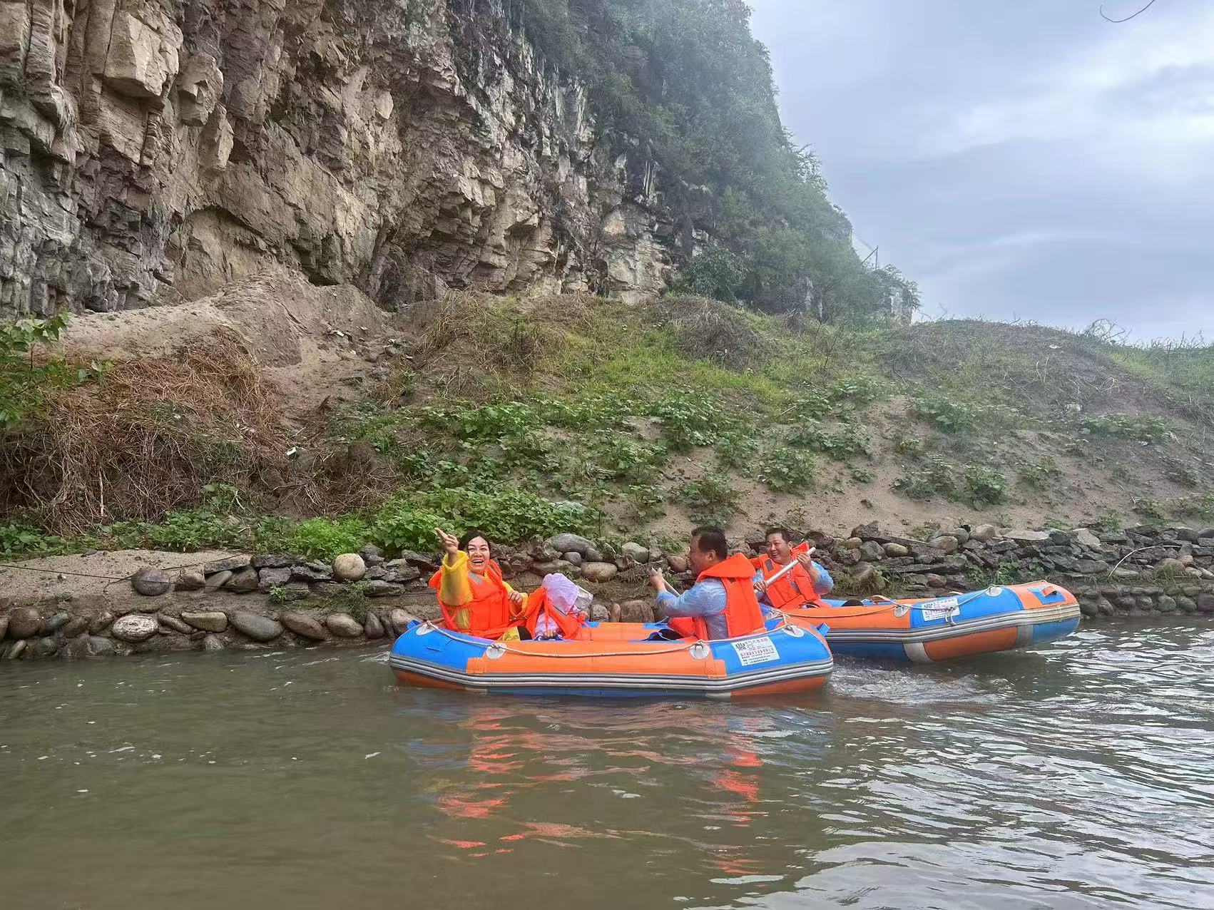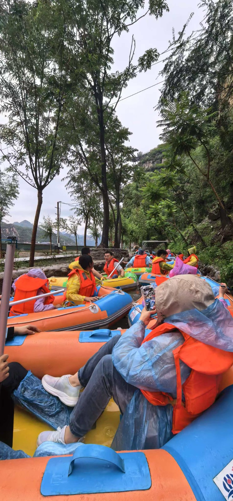 当然今天打水仗最过瘾的还是要数漂流了,经过一段路程,到达了漂流的起始位置,穿戴好救生衣,我们就一个个下饺子坐着皮筏进入了漂流的赛道,顺流而下的皮筏毫无章法的来回旋转着在水上漂,中间环节水仗已然进入激战环节,欢呼声、欢笑声响彻在雨后这清新的山谷间,彷佛一霎那扬起得水花就像是平时工作中出现得各种问题和烦恼,一股脑得全部撒出去,让着满身得疲惫找到了一个宣泄得口子,欢心、轻松且自在~