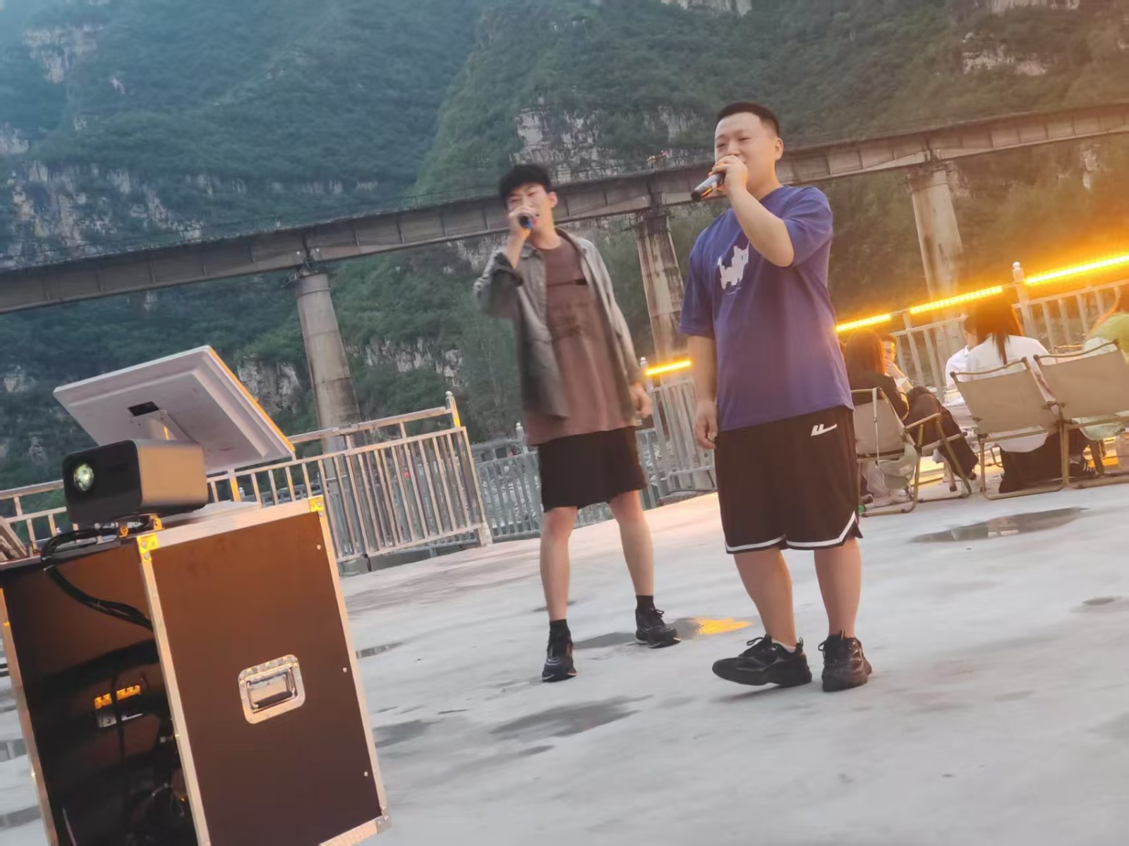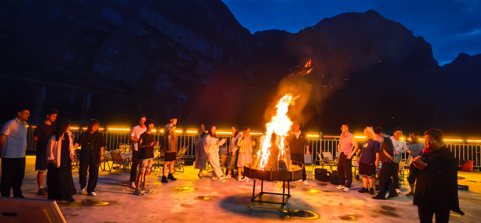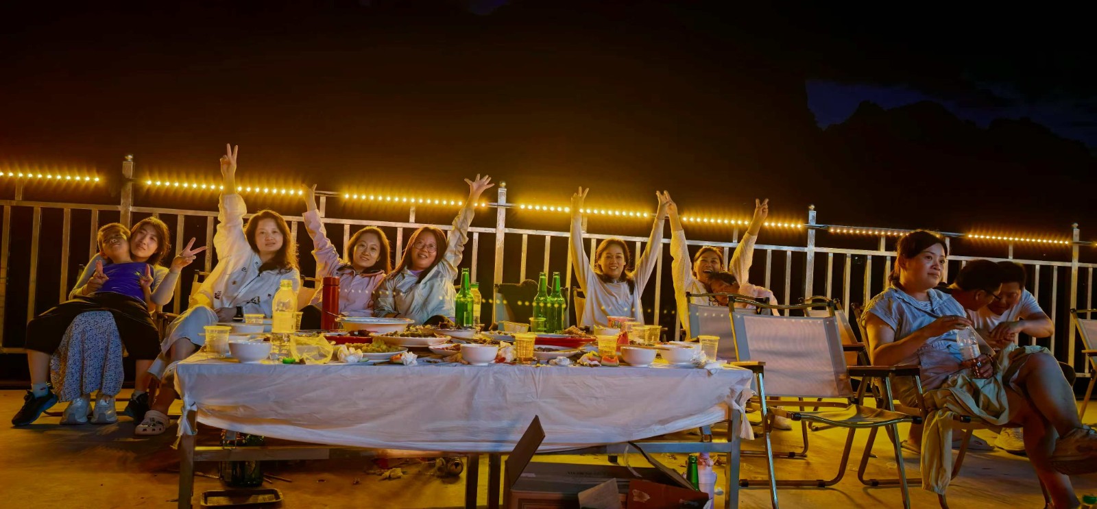 晚上得欢聚时光是这次旅游最畅快饮酒得时候了,家人们围坐在桌子旁边,吃着地方得美食,畅谈着游玩中得欢乐,篝火点燃的时刻,也把我们这晚间的相聚推向了最热闹的高潮,我们一起在围着篝火开心地跳着舞唱着歌,欢笑声加载着这一刻的群魔乱舞,出游的快乐在这一刻应该是最真实的体现了;跟着音乐的旋律挥起手臂,附和着麦霸们的歌声,一起放飞自我~